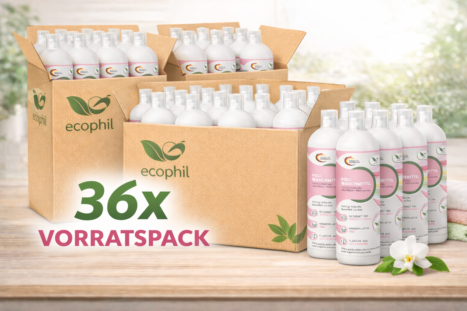 Die ecophil Vorratspakete sind für den regelmäßigen Waschbedarf im Haushalt entwickelt.